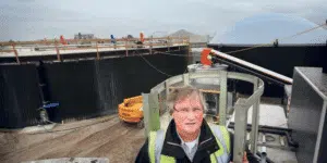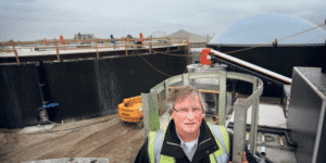 Wim Vrieling van Biogas Leeuwarden bij de mestvergister in aanbouw die de Leeuwarder wijk Techum gaat voorzien van warm water. FOTO CATRINUS VAN DER VEEN